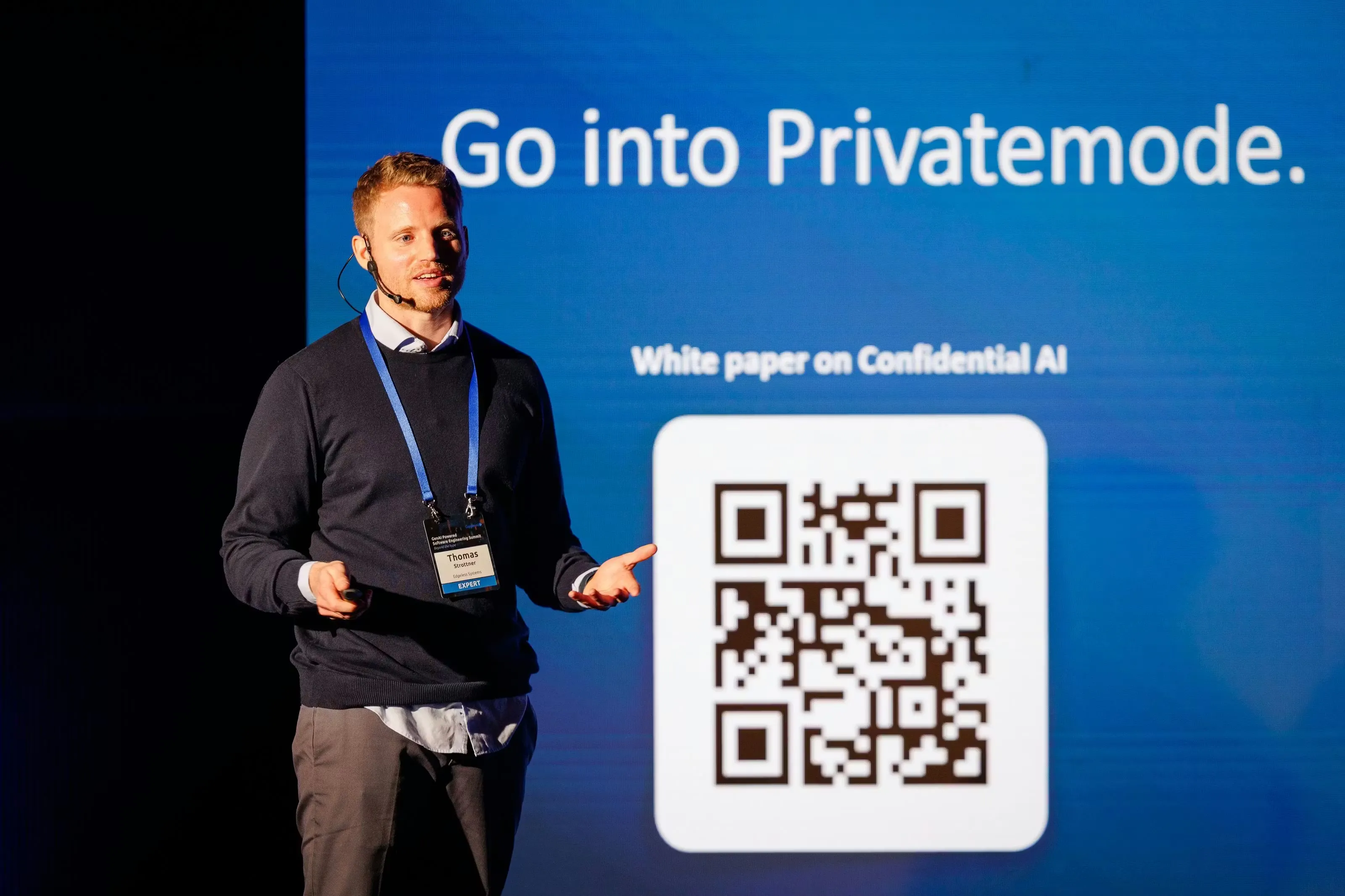Edgeless Systems' VP of Business Development Thomas Strottner at Gapgemini's GenAI summit 2025