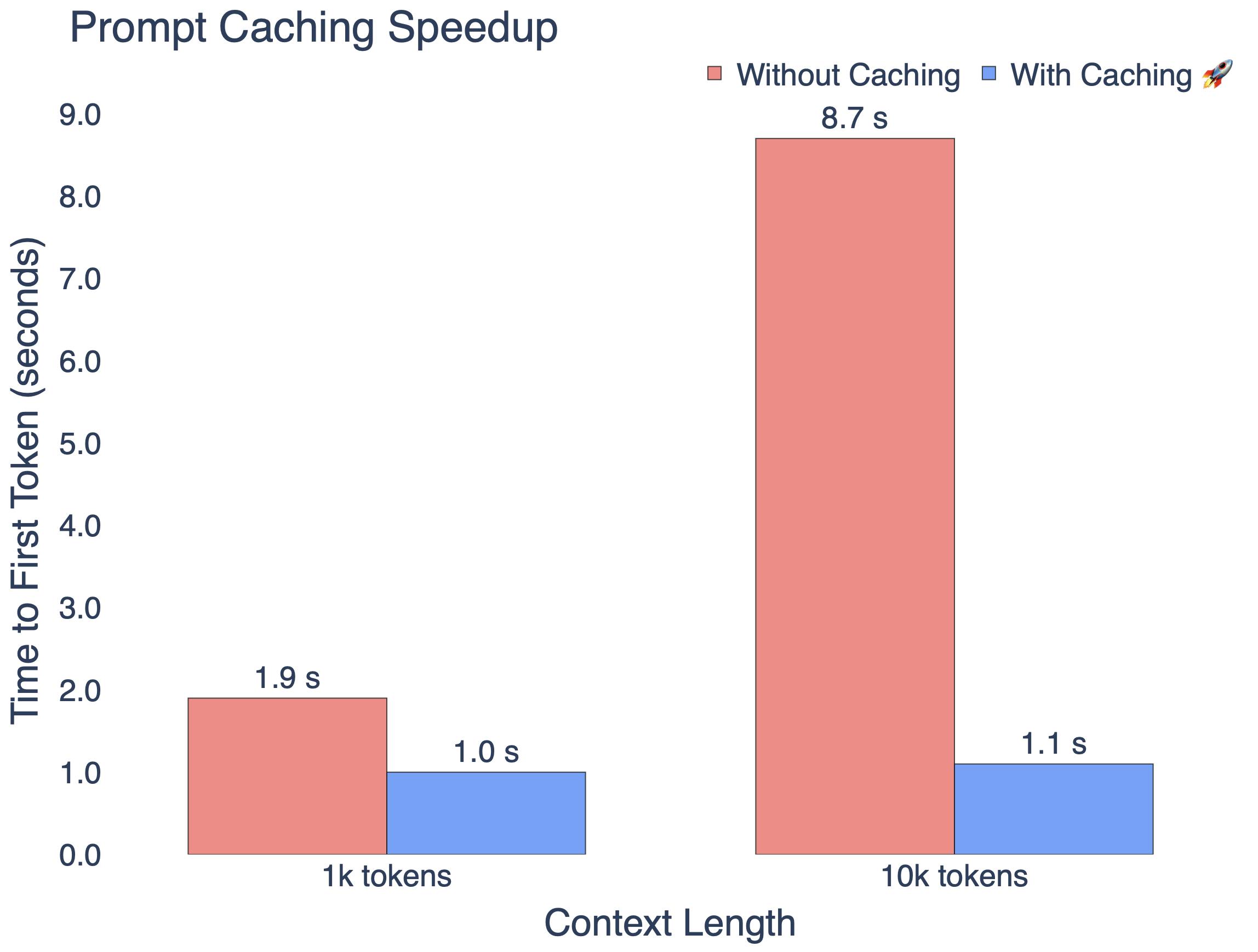 Das Ergebniss ist eindrucksvoll: Prompt Caching minimiert die Antwortlatenz, insbesondere bei großem Kontext. Das Verarbeiten eines Dokuments mit 10 000 Token (etwa 6 000 Wörter bzw. 12 Seiten Text) dauert ohne Prompt Caching etwa 9 Sekunden. Jede weiter Anfrage mit dem Dokument an das Modell würde ebenfalls 9 Sekunden oder länger dauern. Mit aktiviertem Prompt Caching entfällt diese Verzögerung – dank der gecachten Attention‑Eingaben antwortet das Modell bereits nach etwa einer Sekunde.