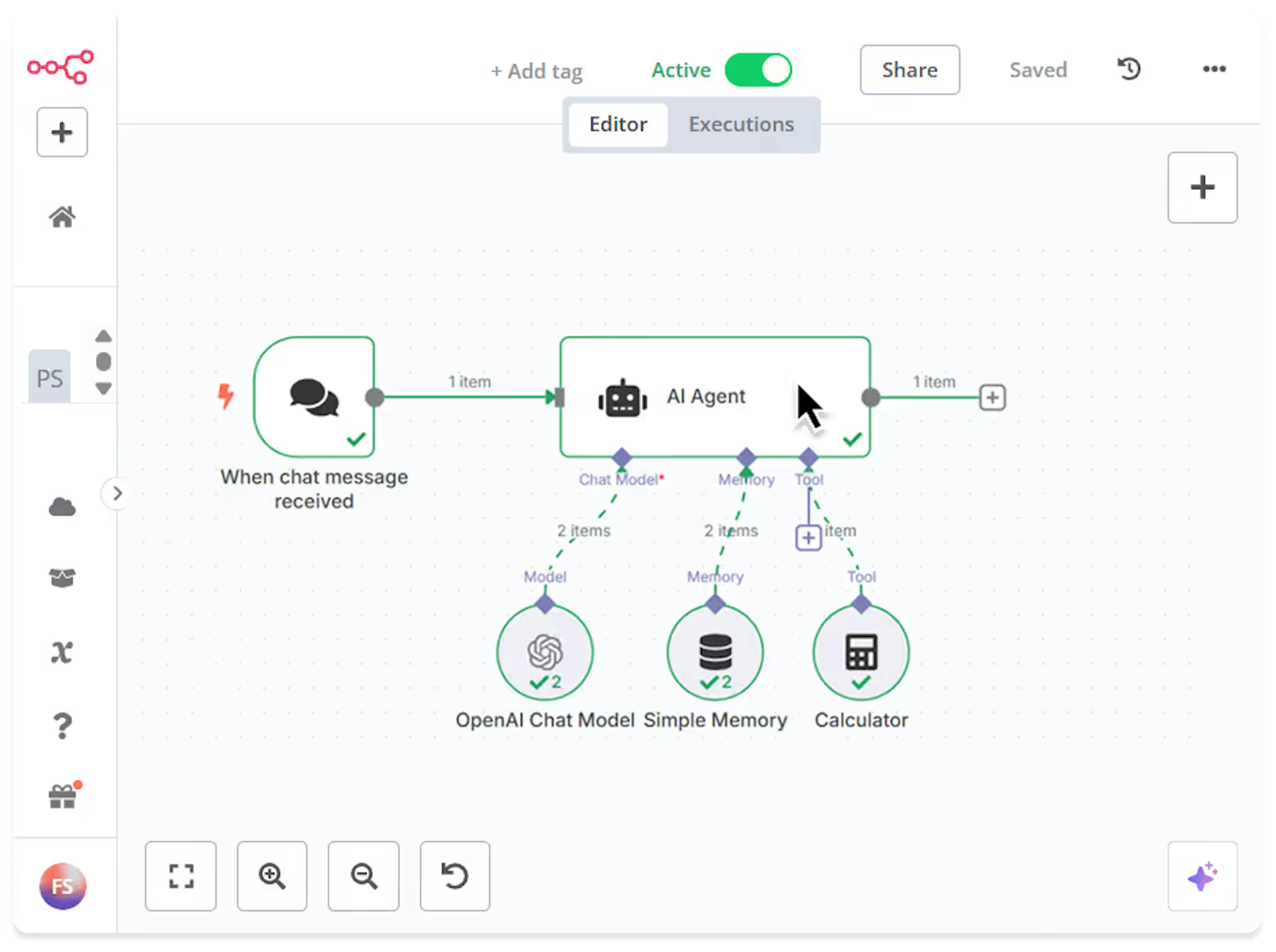 Folgen Sie dem offiziellen n8n-Tutorial zur Einrichtung eines AI-Agenten. Da Privatemode AI der OpenAI-Interface-Spezifikation entspricht, kann der Standard-OpenAI-Chat-Node wie im Tutorial beschrieben verwendet werden. Die Zugangsdaten müssen jedoch gemäß Schritt 5 des Tutorials angepasst werden.Zusätzlich zum AI-Agenten-Node kann das OpenAI-Chat-Modell auch in mehreren weiteren leistungsfähigen AI-Nodes verwendet werden, darunter: