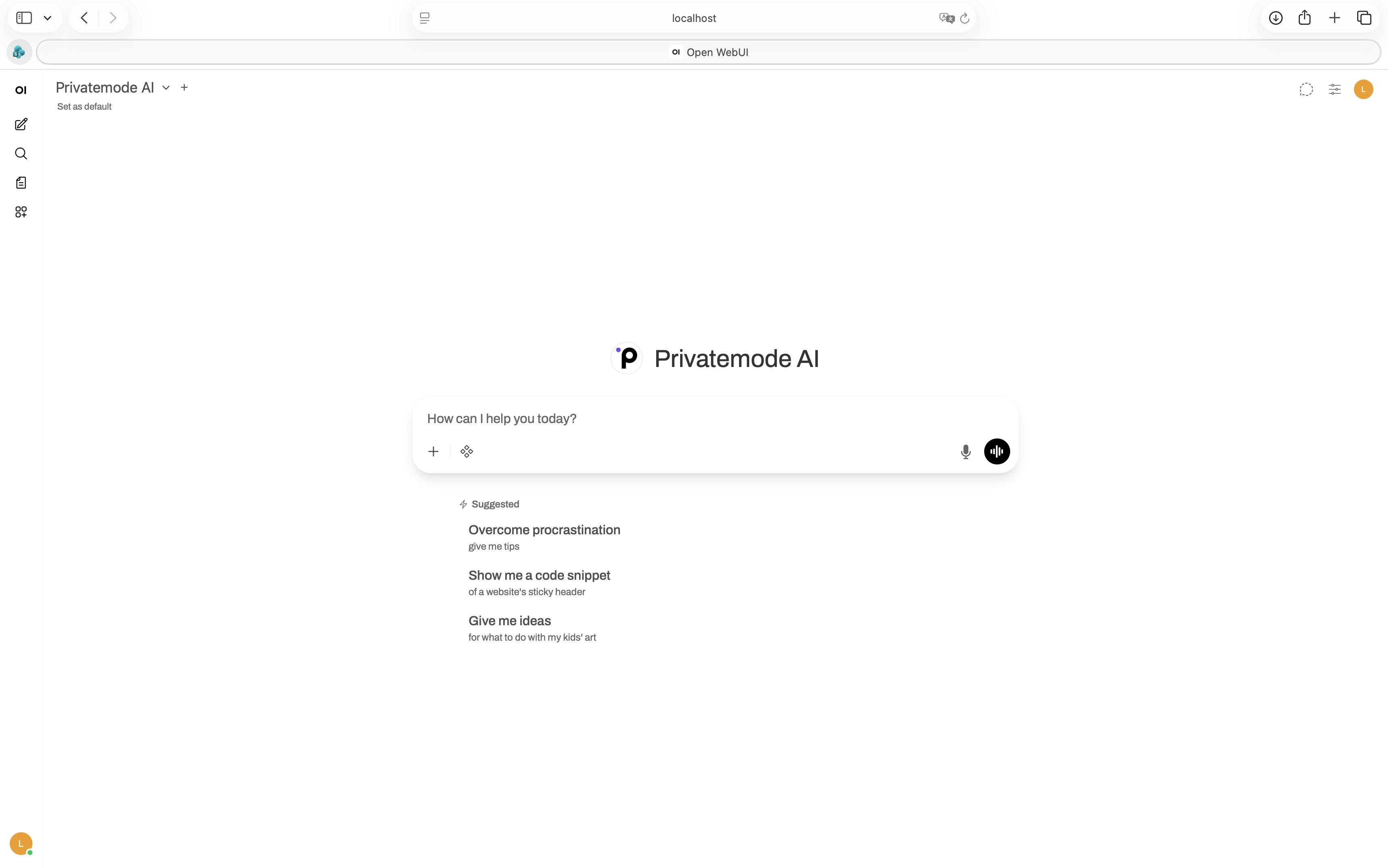 Sie können Privatemode innerhalb weniger Minuten benutzen. Die Einrichtung ist unkompliziert und uneingeschränkt kompatibel mit Open WebUI.