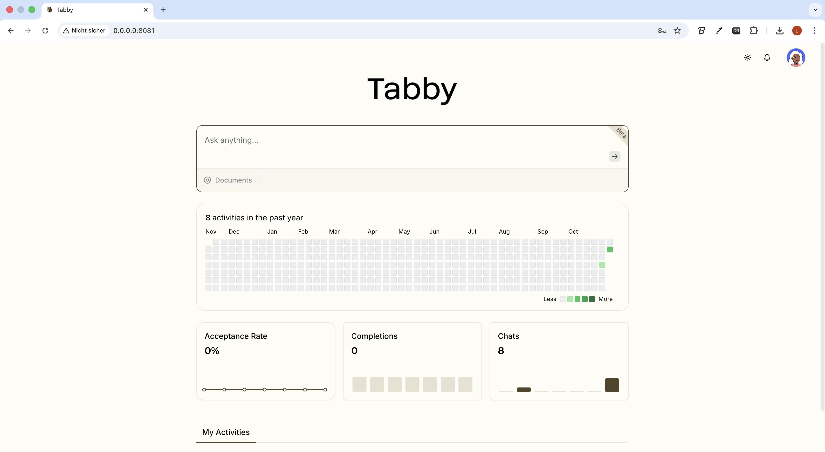 To start Tabby with the configuration you just created, run the following command launching the Tabby server.